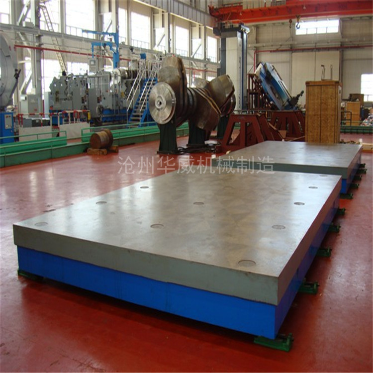 按GB/4986-85的标准制造,产品制成筋板式和箱体式,工作有长方形,材料HT200 ,工作面采用刮研工艺,工作面上可加 V 型、 T 型、 U 型槽和圆孔、长孔等。平板是用于工件检测或划线的平面基准器具。平板安装应调至水平、负荷均分布于各支点上,环境温度( 20±5 ℃ )使用时应避免振动。 铸铁平台用途:用于机械、发动机的动力实验,设备调试,具有较好的平面稳定性和韧性,表面带有T型槽,可以用来固定实验设备。 铸铁平台材质:铸铁HT200-300工作面硬度为HB170-240 ,经过两次人工处理(人工退火 600 度 -700 度和自然时效 2-3 年)使用该产品的精度稳定,性能好。 铸铁平台 规格:100×100—3000×8000,(大于此规格的铸铁平台可以拼装使用或按图纸订做。) 铸铁平台精度:按标准计量检定规程执行,分别为0、1 、 2 、 3 四个等级。
